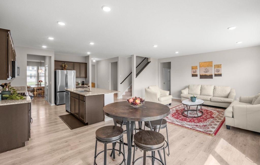 Welcome to this beautiful two-story home located in the desirable Aster Mill neighborhood of Rogers, situated at the start of a quiet cul-de-sac and backing up to peaceful wetlands for added privacy. Conveniently located near restaurants, shopping, and highway access, this home also falls within the highly regarded Elk River School District.Step inside to find 9-foot ceilings and an open, light-filled layout designed with functionality and style in mind. The main level offers a spacious kitchen with a large center island, granite countertops, stainless steel appliances, and a walk-thru butler's pantry. The kitchen flows seamlessly into the informal dining and living areas, while a formal dining room and main-level flex space provide versatility. A convenient half bath completes the main floor.Upstairs, you'll find four bedrooms including a spacious primary suite with a cozy sitting area, walk-in closet, and a private ¾ bath with walk-in shower and double vanity. A loft area, full bath with double vanity and second-floor laundry add to the home's everyday ease.The recently finished lower level offers even more space with a large family room featuring an electric fireplace, a fifth bedroom, additional ¾ bath, and a game room with a future wet bar area, perfect for entertaining or relaxing.The attached 3-car garage includes an expanded area, providing ample storage!Space, privacy, and location all wrapped into one!