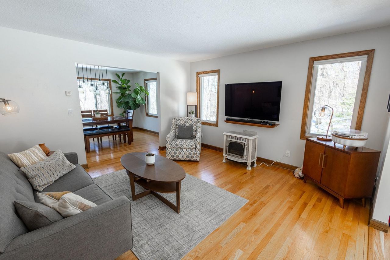 Beautiful two story home on a wooded 2.9 acre lot that backs up the Credit River. Enjoy stunning views from nearly every window or immerse yourself in the natural beauty while lounging on the composite decks. Kitchen has abundant storage, plenty of workspace and stainless steel appliances. The sliding doors offer convenient access to the wrap around deck which leads to the fenced area of the side yard. The main level also has a formal dining room, living room and an incredibly charming sunroom. Main floor laundry and powder room, too! The upper level has 4 bedrooms, one is the perfect size for a nursery or home office. The primary bedroom ensuite boasts a walk-in closet, dual sink vanity, and tiled shower. Sunlight and beautiful views continue in the lower level of this walkout home. Fifth bedroom and ¾ bath in addition to the family room and rec area make this lower level a great spot for hanging out and entertaining. Fireplace in the lower level family room is wood burning and the main level living room has an adorable gas stove. The upper level hall bath and main level powder room were recently renovated. And yes, there is heat in the attached 3 car garage. : )
